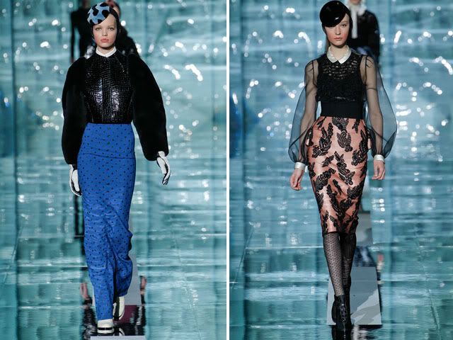 Today's inspiration comes from one of my favorite designers Marc Jacobs, this season he brings us polka dots in a whole new way, mixing them and using different textures like the shiny pencil skirts. I am head over heels for the chiffon sleeves, they are so dreamy and romantic.